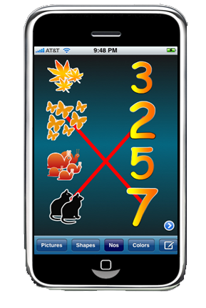 Match Magic is designed keeping preschoolers in mind. It is very ideal for kids between the ages 3 to 5. Match Magic is a wonderful game which is designed to encourage preschoolers to learn colors, shapes, numbers, pictures etc in a fun way by matching them. It is designed with a very simple layout. Kids just need to touch and drag from left to right to match the two images. They get a visual clue of a line being drawn as they touch and drag to match them.