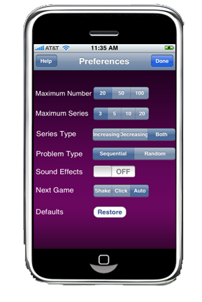 - Parents can customize this application to their kids level of expertise. The default setup is to start the kids with simple number series (1's) and after 25 problems (first award), it will advance to next series and so on. If you choose random the series will be randomly selected. Additional options to setup the maximum start number and ascending or descending options are also provided.